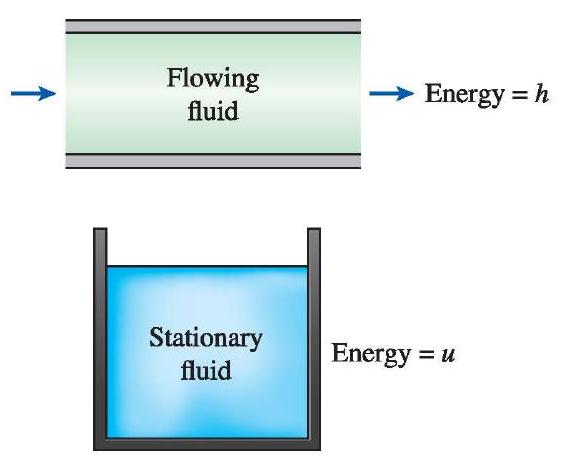 Figure 2-2 The internal energy (u) represents the microscopic energy of a nonflowing fluid, whereas enthalpy (h) represents the microscopic energy of a flowing fluid.