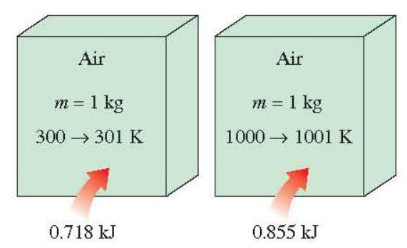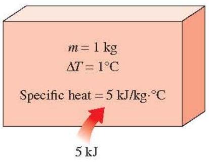 Figure 2-3 Specific heat is the energy required to raise the temperature of a unit mass of a substance by one degree in a specified way.