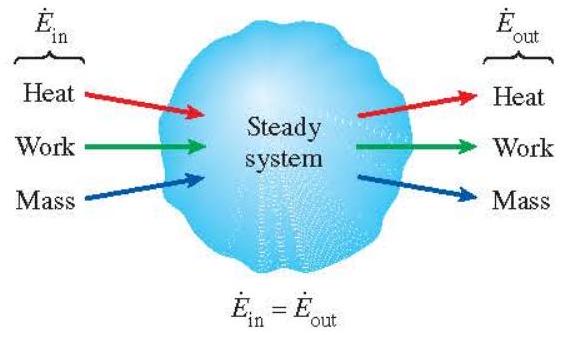 Energy is a property, and the value of a property does not change unless the state of the system changes. Therefore, the energy change of a system is zero if the state of the system does not change during the process, that is, the process is steady. The energy balance in this case reduces to (Fig. 2-6)