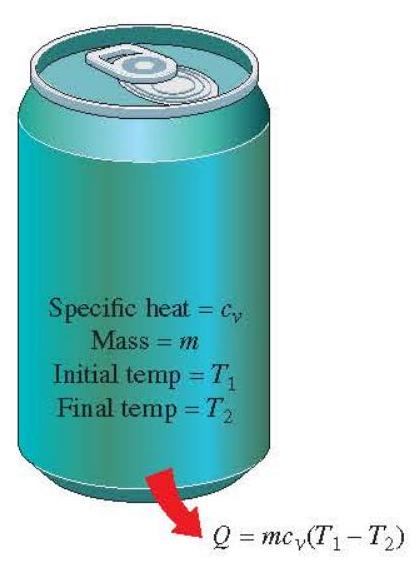 \mathrm{Q}=m c_{v} \Delta T \quad(\mathrm{~kJ})