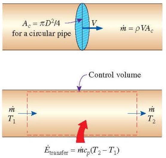 Figure 2-9 Under steady conditions, the net rate of energy transfer to a fluid in a control volume is equal to the rate of increase in the energy of the fluid stream flowing through the control volume.